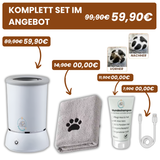 Du erhältst nicht nur unseren hochwertigen elektrischen Pfotenreiniger, sondern auch das gesamte Zubehör für eine angenehme Pfotenpflege kostenlos dazu.